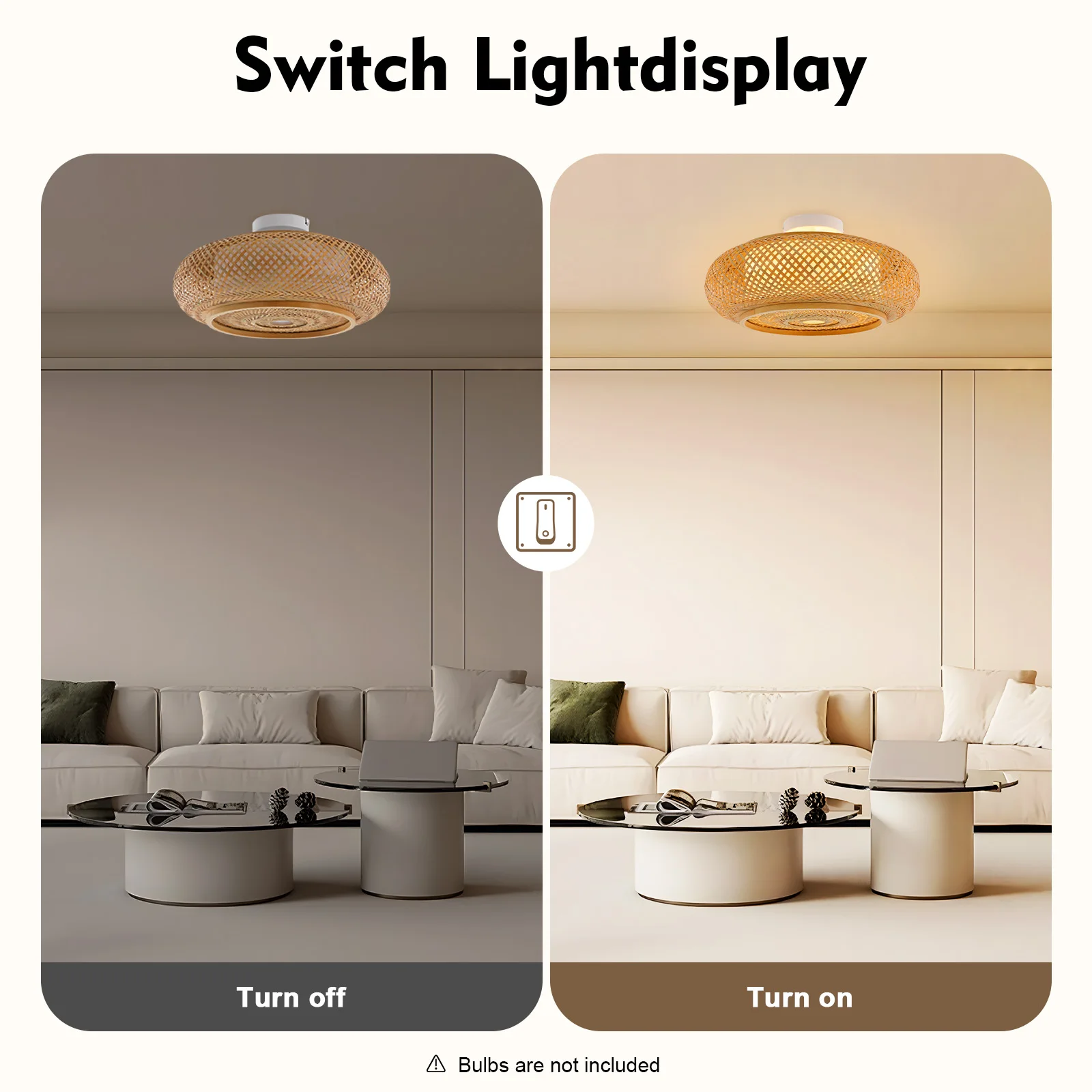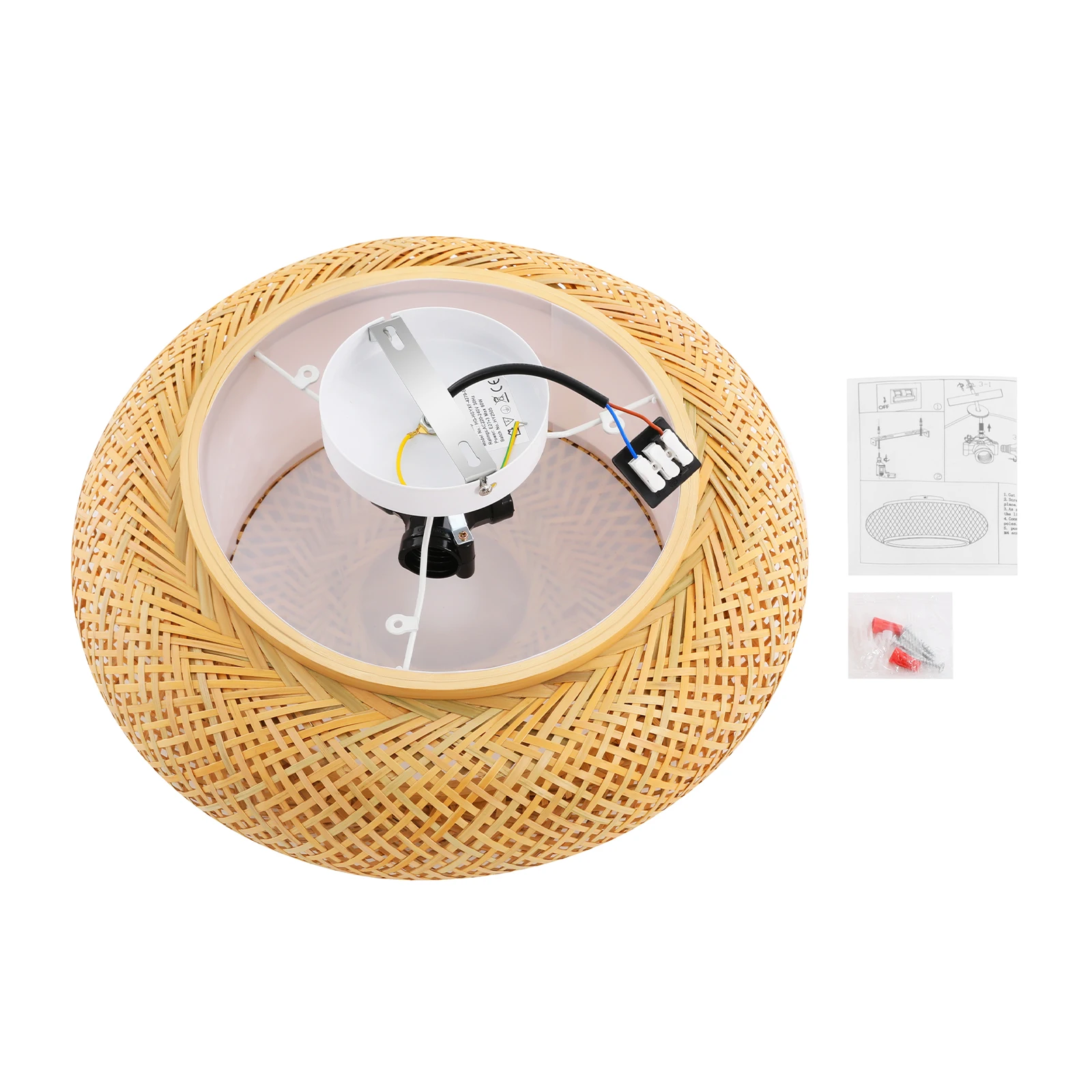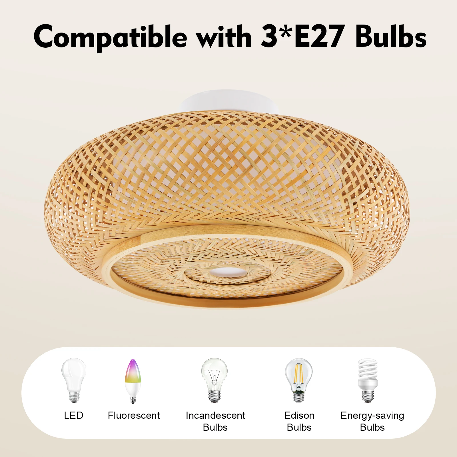 Exceptional Lighting Experience: It is compatible with three E27 bulbs (not included) to illuminate 107.64-161.46ft² spaces with vibrant light. Its hand-woven bamboo shade diffuses brightness softly, balancing vivid illumination with a cozy glow while wrapping rooms in gentle warmth.