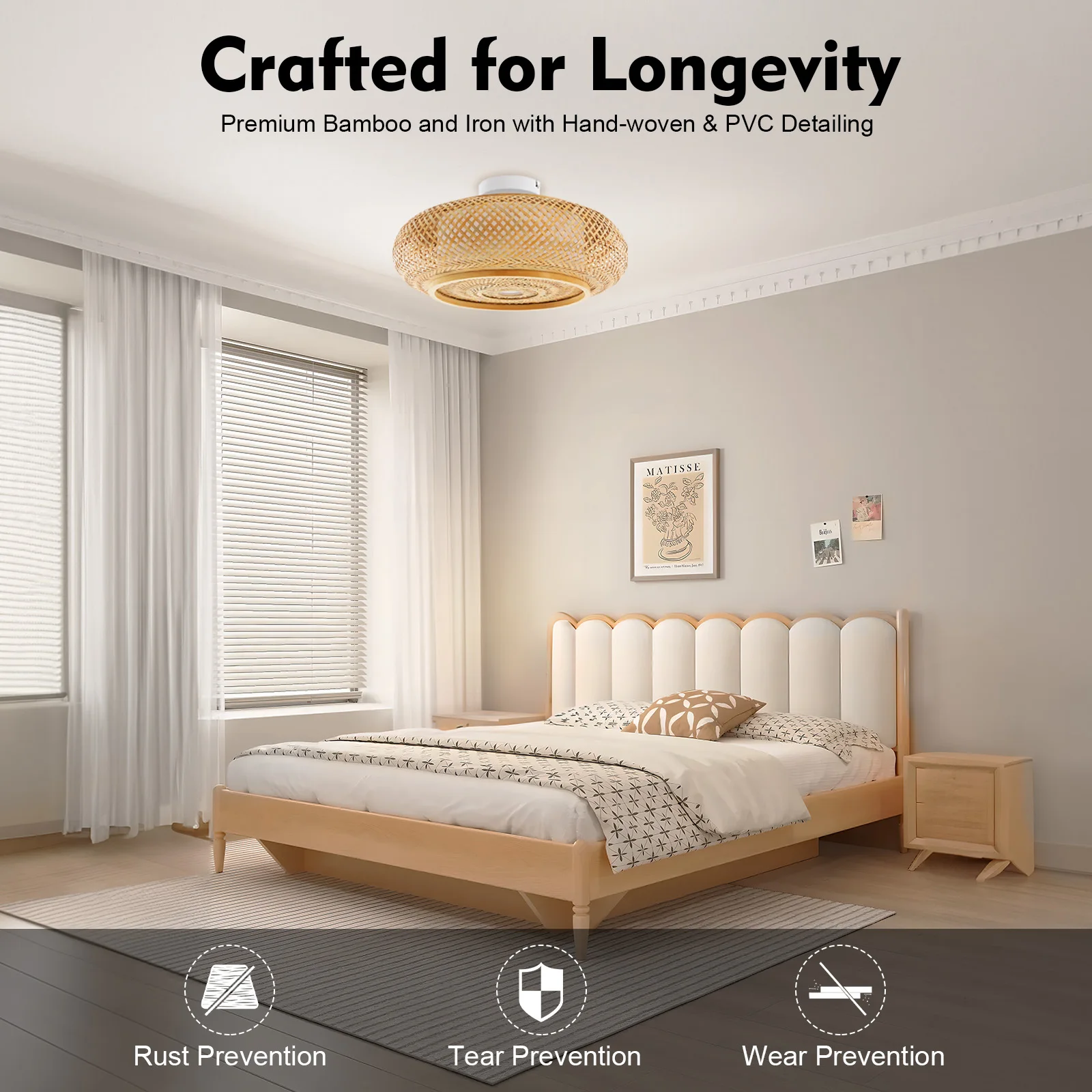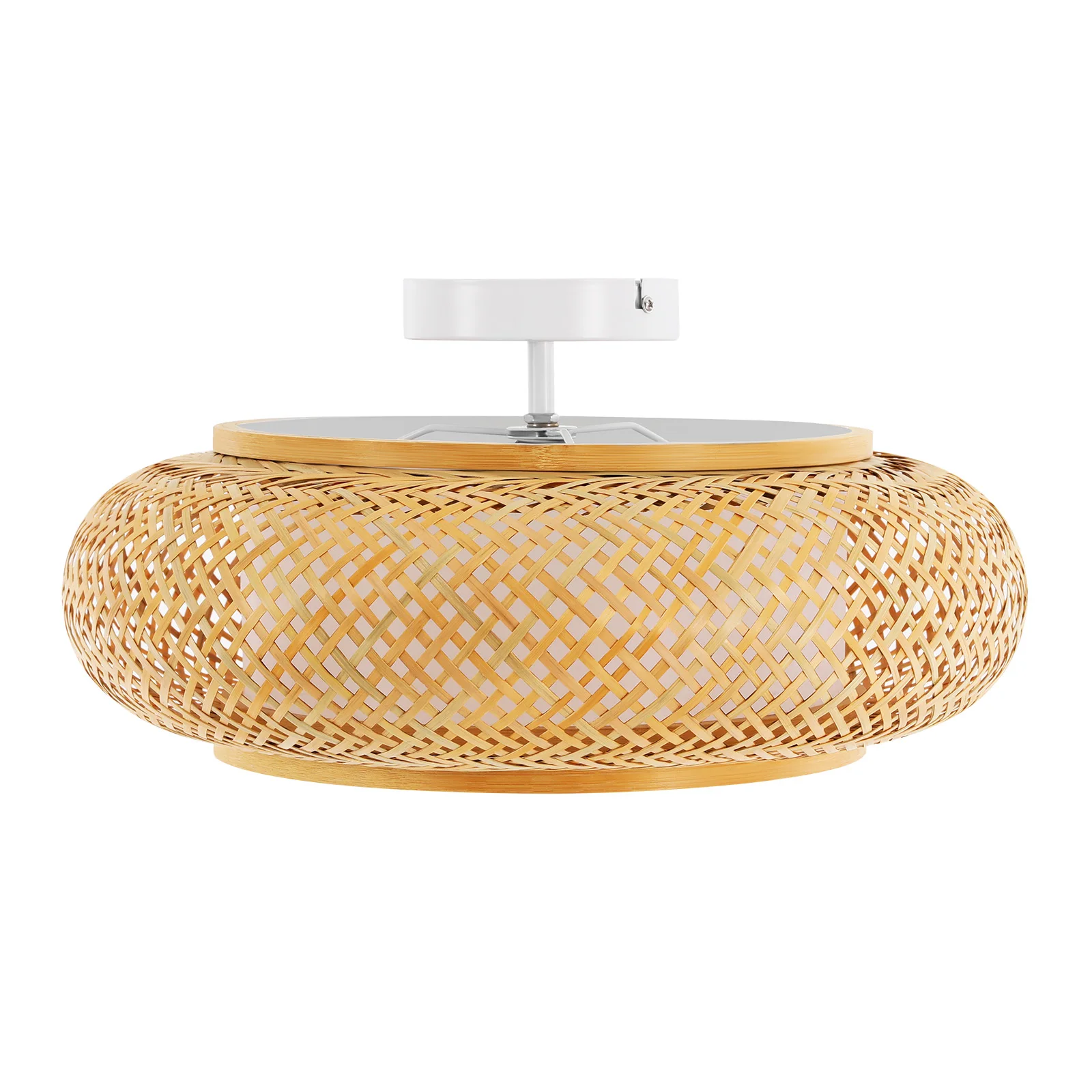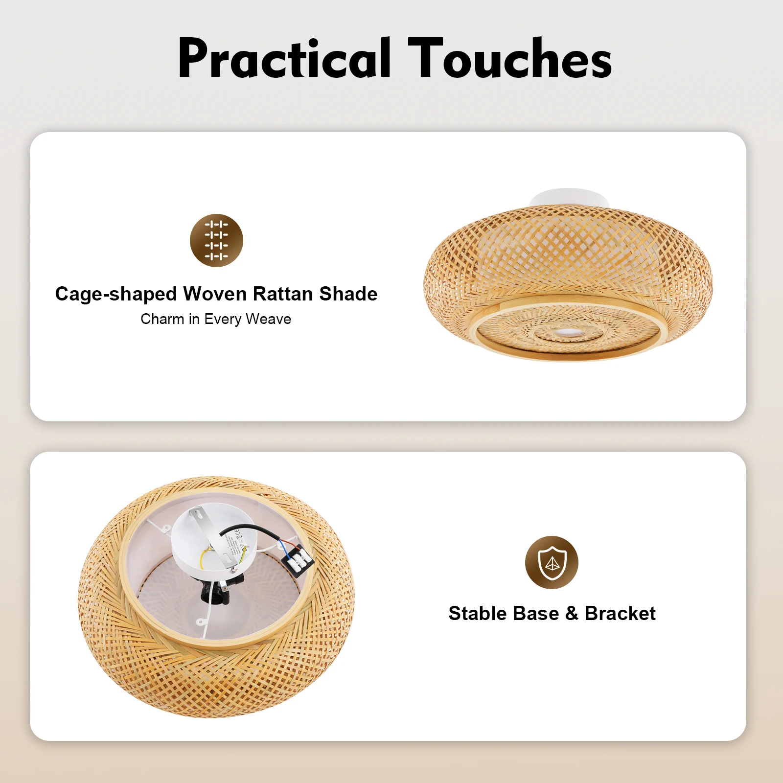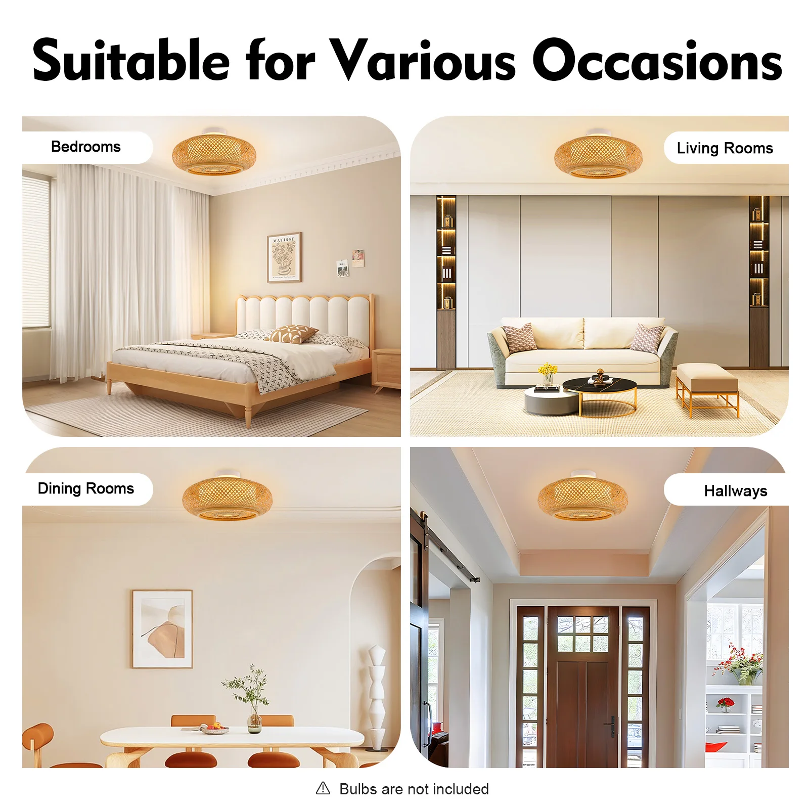 Exceptional Lighting Experience: It is compatible with three E27 bulbs (not included) to illuminate 107.64-161.46ft² spaces with vibrant light. Its hand-woven bamboo shade diffuses brightness softly, balancing vivid illumination with a cozy glow while wrapping rooms in gentle warmth.
